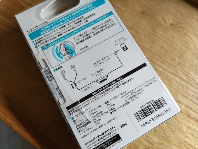 それで探していたのが「インナーイヤー型」のコードありタイプ。ちょっと耳に入れる部分大きめかなと思いましたがあまり気にならず使えてます。