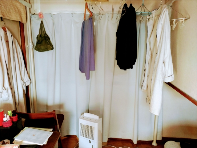 細い釘が折れてしまったので再起不能でした。どうしよう……と考えて楽天で検索して見つけたのが突っ張りタイプの物干しです。