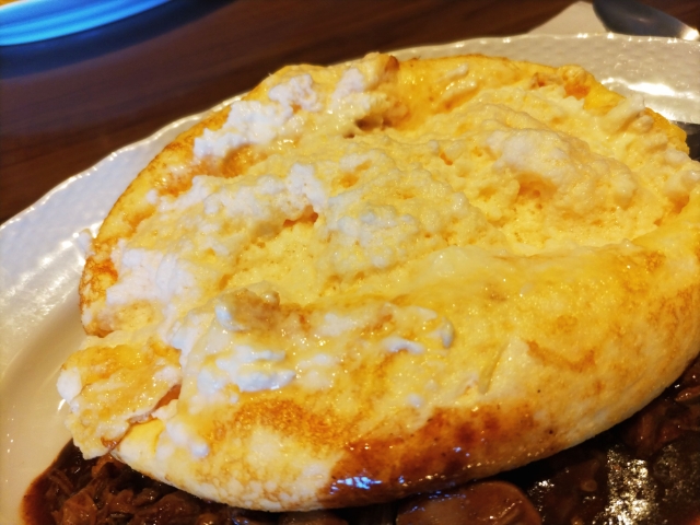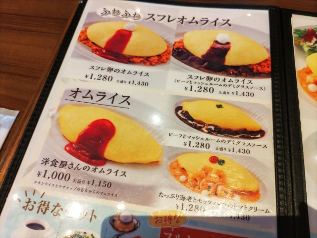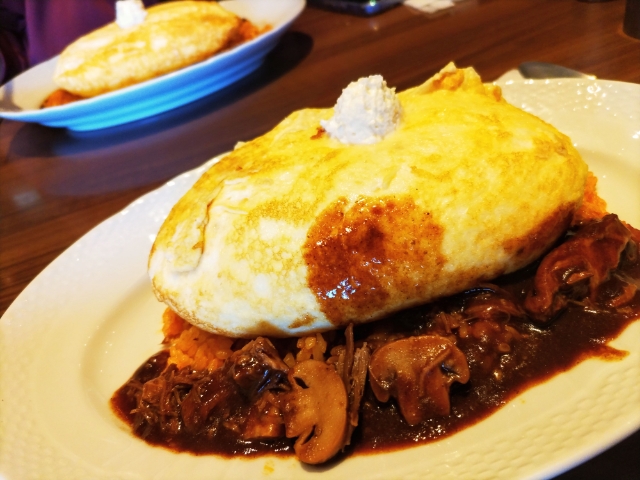 メニューをみてもわかると思いますが「普通のオムライス」と「スフレオムライス」があるのですが、注文を取った店員さん(若いバイトの男の子でした)「スフレオムライス」を注文したのに「普通のオムライス」のデミグラスソースと入れてしまったようで…..