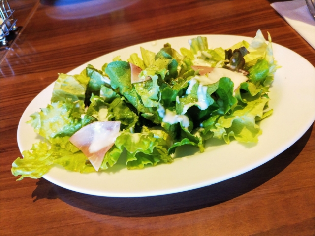 スフレのオムライスのデミグラスソースの注文。これにフルセットとして「サラダ+デザート+ドリンク」が+680円でつくものにしました。